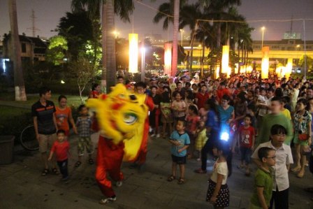 (VOVworld) – Fast 1000 Kinder und ihre Eltern haben am Samstag an einem Umzug zum Mittherbstfest 2015 teilgenommen. Der Umzug wurde vom Museum Hanoi gemeinsam mit GROUP “Dinh Lang Viet” veranstaltet. Bei der Veranstaltung wurden vor allem traditionelle Spiele wie beispielsweise Löwentanz und Sternlaternenumzug vorgeführt. Die Organisatoren wollen dadurch die Kinder dazu erziehen, die Kulturidentität des Volkes zu bewahren.
