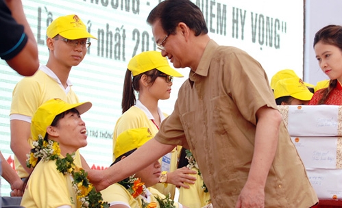 | Der Vorsitzender der Vaterländischen Front Vietnams, Nguyen Thien Nhan, beim Treffen mit den herausragenden Behinderten. (Foto: chinhphu.vn) |