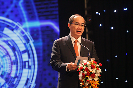 | Vorsitzender der Vaterländischen Front Vietnams, Nguyen Thien Nhan, redet in der Preisverleihung. (Foto: Huu Nghi/dantri.com.vn) |