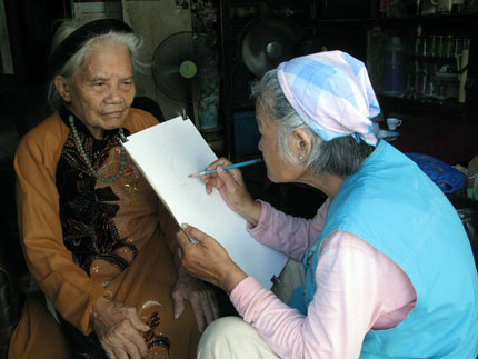 | Der Leiter der Personalabteilung der Parteizentralkomitees Pham Minh Chinh besucht Heldenmutter Tran Thi Khan. (Foto: baoquangnam.vn) |