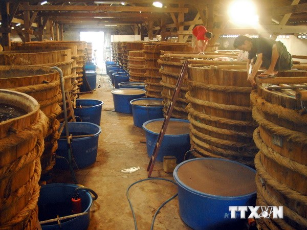 | Das Markenzeichen der Fischsoße auf der Insel Phu Quoc wird von der vietnamesischen Behörde für geistiges Eigentum geschützt. (Foto: VNA) |