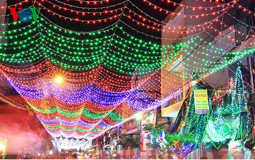 | Die Straßen in Ho Chi Minh Stadt werden zum Weihnachten schön dekoriert. |