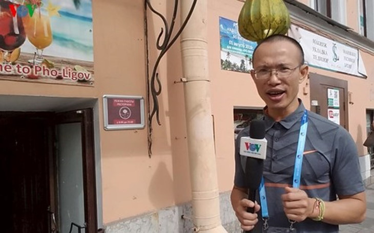 Es ist 8 Uhr 30. Eine Gruppe von Gästen aus Vietnam kommt an. Sie sind Fußballfans und wollen die Spiele der Fußallweltmeisterschaft in Russland ansehen. Sie sind mit dem Zug angekommen. Nach 10 Stunden Fahrt sind alle müde. Sie freuen sich sehr auf eine Reisnudelsuppe mit Rindfleisch bei dem kühlen Wetter in St Petersburg. Dazu Nguyễn Thế Dương von der Gruppe: