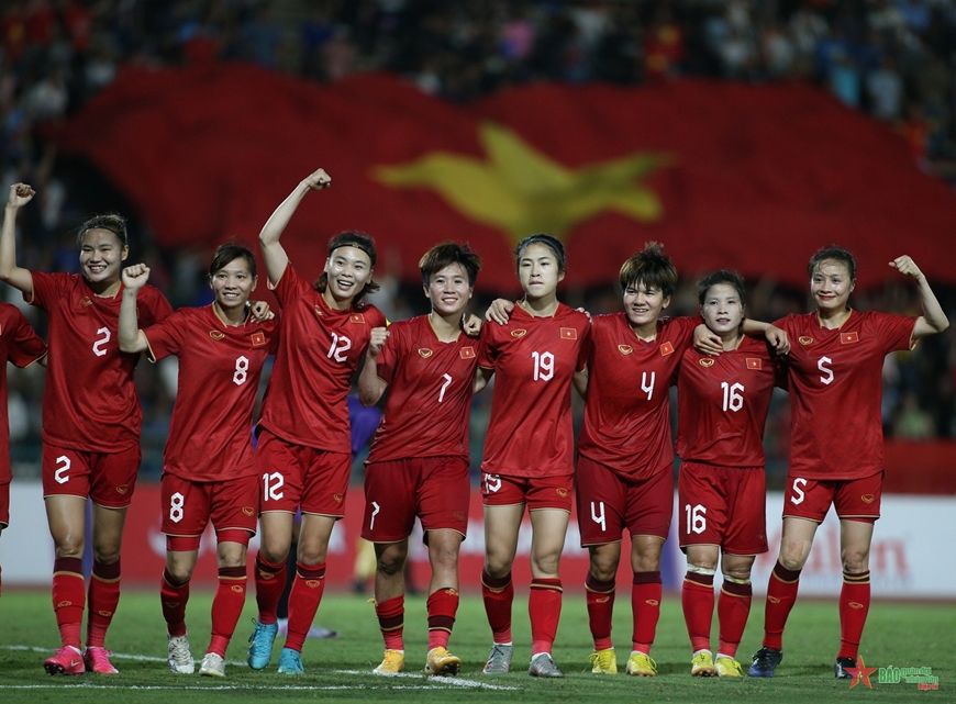 Das vietnamesische Karate-Team gewinnt die Goldmedaille in der Kumite-Kategorie der Frauen. (Foto: AKF) |