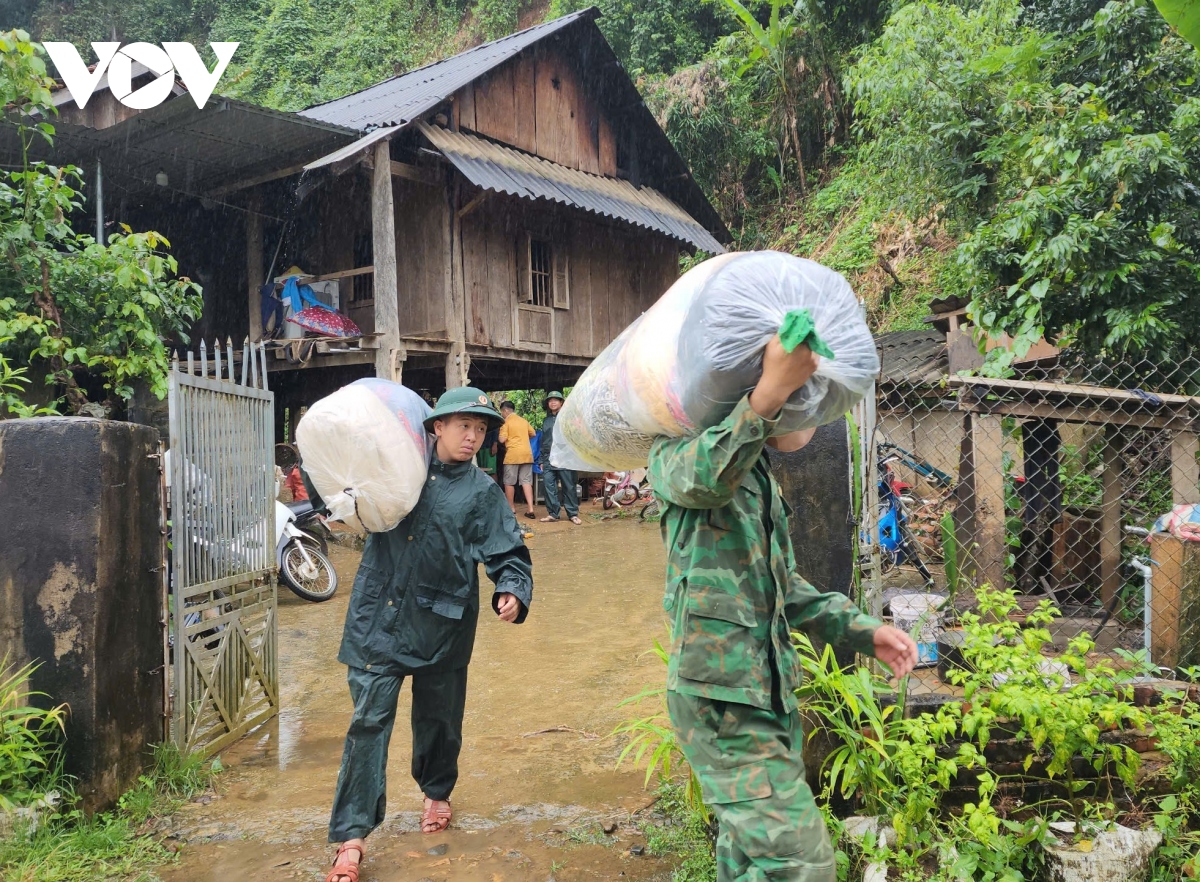 ![]() Die Sicherheitskräfte helfen den Bewohnern in der Provinz Son La bei der Evakuierung. (Foto: VOV)