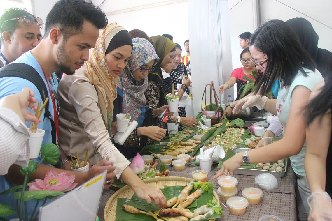 | Zahlreiche Besucher interessieren sich für den Stand der Esskultur aus Vietnam. (Foto: Chi Giap) |