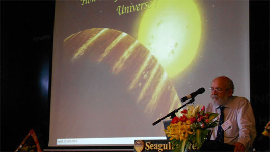 | Professor Michel Mayor erstattet seinen Bericht auf der Konferenz. (Foto: hoaian.binhdinh.gov.vn) |