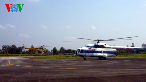 | Zwei vietnamesische Hubschrauber heben für die Suche nach dem vermissten malaysischen Flugzeug ab. |