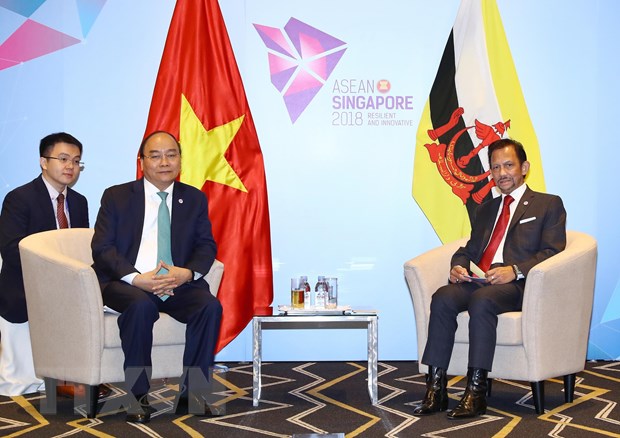Premierminister Nguyen Xuan Phuc (l.) beim Treffen mit dem König von Brunei. |