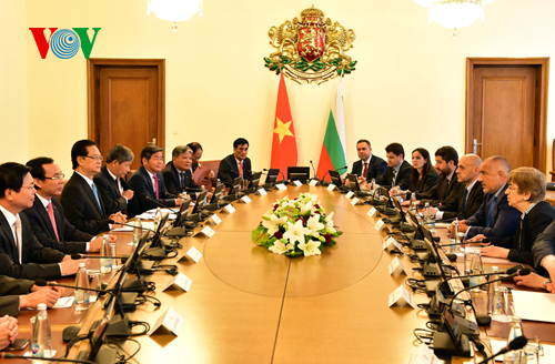 Auf der Pressekonferenz nach dem Gespräch sagte der Premierminister Bojko Borissow, Bulgarien unterstütze Vietnam bei der Verstärkung der Beziehungen mit der Europäischen Union. Bulgarien werde die EU drängen, bald das Vietnam-EU-Rahmenabkommen über Zusammenarbeit und umfassende Partnerschaft zu ratifizieren. Sofia unterstütze auch die baldige Fertigstellung der Verhandlungen und die Unterzeichnung des Vietnam-EU-Freihandelsabkommens. Es solle dazu beitragen, die Beziehungen zwischen Vietnam und Bulgarien voranzutreiben und zugleich Vietnam zu ermöglichen, sich als Marktwirtschaft erfolgreich in die Weltwirtschaft einzugliedern, so der bulgarische Premierminister. Beide Politiker einigten sich darauf, weiterhin eng auf den Foren der Vereinten Nationen, auf dem Asien-Europa-Zusammenarbeitsforum ASEM sowie auf den anderen internationalen Foren zu kooperieren. Sie diskutierten zudem einige internationale und regionale Fragen. Den Journalisten sagte der vietnamesische Premierminister Nguyen Tan Dung: