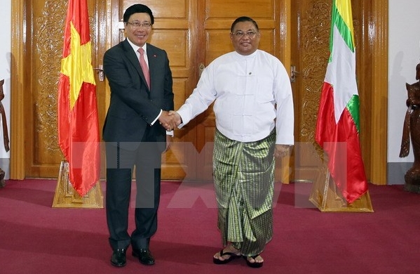 Staatspräsident Tran Dai Quang und Präsident Htin Kyaw begrüßten die starke Verbindung beider Länder in den Bereichen Landwirtschaft, Telekommunikation, Verkehr und Transport. Sie verpflichteten sich, diese Verbindung durch die Zusammenarbeit und Vereinbarungen zu verstärken, um die rechtliche Grundlage für die Zusammenarbeit in konkreten Bereichen zu schaffen. Die beiden Spitzenpolitiker betonten die Bedeutung der Aufrechterhaltung des Friedens, der Stabilität und des Wohlstands in der Region. Sie werden die Bemühungen um den Aufbau der ASEAN-Gemeinschaft durch die effektive Umsetzung der Vision der ASEAN-Gemeinschaft 2025 forcieren. Betont wurde zudem die Bedeutung der friedlichen Lösung der Streitigkeiten in der Region. Demnach sollen die beteiligten Seiten die diplomatischen und rechtlichen Prozesse respektieren und keine Gewalt und Drohungen anwenden. Sie sollen die anerkannten Prinzipien des internationalen Völkerrechts respektieren, darunter die UN-Seerechtskonvention von 1982. Vietnam und Myanmar unterstützen die Umsetzung der Erklärung über das Verhalten der Anrainerstaaten im Ostmeer (DOC), um dadurch baldmöglich ein Regelpaket über das Verhalten der Anrainerstaaten im Ostmeer (COC) zu erstellen.