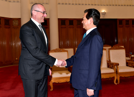 | Premierminister Nguyen Tan Dung (r.) beim Treffen mit dem slowakischen Justizminister Tomáš Borec in Hanoi. (Foto: Nhat Bac) |