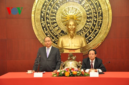 (VOVworld) – Während seines China-Besuchs hat Vize-Premierminister Nguyen Xuan Phuc am Mittwoch die Mitarbeiter der vietnamesischen Botschaft in China getroffen. Dabei forderte er die Mitarbeiter dazu auf, die Außenpolitik der Partei und des Staates zu meistern und die Vereinbarungen zwischen Vietnam und China effizient umzusetzen sowie die strategische, umfassende Partnerschaft mit China zu fördern. Die vietnamesische Botschaft in China sollte eine Brücke für die Entwicklung der Freundschaftlichkeit zwischen Vietnam und China sein. Jedoch sollte sie den Kampf zur Verteidigung des Territoriums fortführen und zugleich die Zusammenarbeit in der Wirtschaft vorantreiben und das gesetzmäßige Interesse der in China lebenden Vietnamesen schützen.
