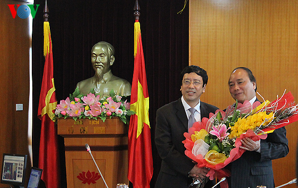 | Vize-Premierminister Nguyen Xuan Phuc (r.) und VOV-Intendant Nguyen Dang Tien. |