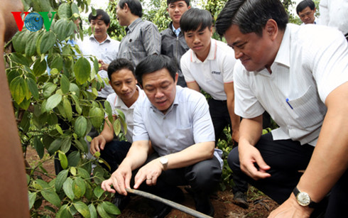 (VOVworld) - Vizepremierminister Vuong Dinh Hue hat am Samstag die zentralvietnamesische Provinz Gia Lai besucht, um die Umsetzung der Aufgaben zur sozialwirtschaftlichen Entwicklung der ersten fünf Monate zu überprüfen. Er forderte die Provinzbehörden dazu auf, entschlossene Maßnahmen zu ergreifen, um die gesetzten Ziele für das ganze Jahr realisieren zu können. Zuerst solle Gia Lai die Regierungsbeschlüsse zur Verbesserung des Geschäftsumfelds und der Wettbewerbsfähigkeit sowie zur Förderung der Unternehmen weiter umsetzen, so Vizepremierminister Vuong Dinh Hue weiter.
