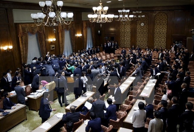 Japanische Abgeordnete stimmen eine Resolution im Senat ab. (Foto: AFP/VNA) |