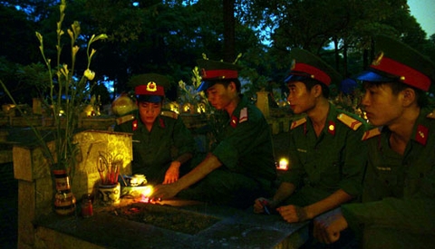 (VOVworld) – Am Montag hat der Jugendverband der zentralvietnamesischen Provinz Quang Tri ein Gebet mit Räucherstäbchen und Kerzen auf dem Nationalfriedhof der gefallenen Patrioten der Straße Nr. 9 veranstaltet. Anlass ist der bevorstehende Jahrestag der Kriegsversehrten und gefallenen Soldaten. Der Verband überreichte außerdem Geschenke an Familien der Kriegsversehrten und gefallenen Soldaten vor Ort. Die Aktivitäten fanden aus diesem Anlass ebenfalls in den Provinzen Thai Nguyen, Hai Duong, Hung Yen im Norden und Tien Giang im Süden statt.