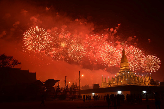 | Das Werk “That Luang-Turm in Vientiane” des laotischen Fotografen Ikham Khamlasee. |