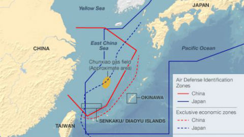 Die Identifikationszone zur Luftverteidigung, die von China einseitig im Ostchinesischen Meer eingerichtet wurde, besteht aus der umstrittenen Inselgruppe Senkaku, oder auf chinesischer Seite als Diaoyu genannt. Es ist eine kleine unbewohnte Inselgruppe südlich von Okinawa, die Japan verwaltet. Die ADIZ-Einrichtung Chinas befindet sich außerdem in der Luftverteidigungszone Südkoreas im Ostchinesischen Meer. Dies zeigt, dass die Streitigkeiten in Nordostasien sich nicht nur auf dem Meer ereignen, sondern auch in der Luftzone. Japan, Südkorea, die USA und viele Länder protestierten scharf gegen die Aktion Chinas.