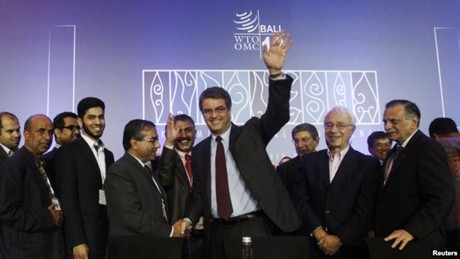 Die Teilnehmer gratulierten den WTO-Generaldirektor Roberto Azevedo nach der WTO-Sitzung im indonesischen Bali. (Foto: Reuters/ baodientu.chinhphu.vn) |