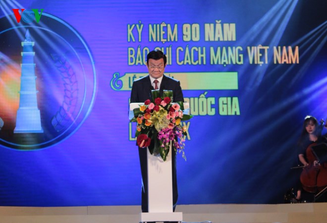 (VOVworld) – Die Feier zum 90. Jahrestag der Revolutionspresse und die Verleihung der Nationaljournalismuspreise 2014 haben am Sonntag in Hanoi stattgefunden. Dabei erklärte Staatspräsident Truong Tan Sang, in den vergangenen 90 Jahren habe die Revolutionspresse die Nation begleitet und der Revolution sowie dem Volk gedient. Der Staatspräsident betonte, die Medien sollten ihre Rolle als Pioniere im Bereich Kultur und Ideologie spielen.
