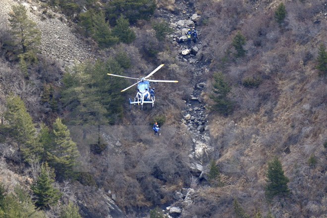 | Ein Hubschrauber fliegt über den Absturzort. (Foto: AFP/VNA) |