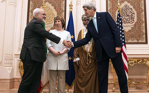 | US-Außenminister John Kerry (r.) und sein iranischer Amtskollege Mohammed Dschawad Sarif. (Foto: AFP/VNA) |