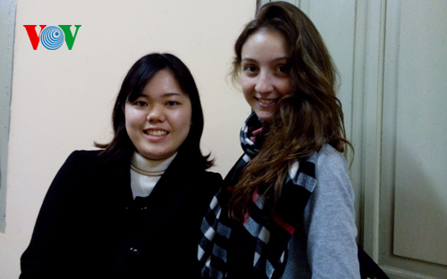 (VOVworld) – In diesem Jahr feiern etwa 110 ausländische Studenten das traditionelle vietnamesische Neujahrsfest Tet in Hanoi. Es ist das erste Mal, dass Lou Varvas, die französische Studentin in der Abteilung für Vietnamistik an der Hochschule Hanoi das Neujahrsfest in Vietnam feiert. Sie sagte, die Stimmung am Tet-Fest in Vietnam sei sehr fröhlich. Mit der Hilfe ihrer Lehrer und Freunde könne sie viel über die Kultur am Neujahrsfest der Vietnamesen lernen. Für den kanadischen Student Riccaroi Bessard sind die Feststage in Vietnam warm und herzlich. Alle Menschen versammeln sich, um das neue Jahr zu begrüßen, leckere Gerichte zu kochen und sich gegenseitig beste Wünsche zu überbringen, sagte er.