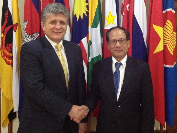 | Der Assistent des UN-Generalsekretärs für politischen Angelegenheiten, Miroslav Jenca (l.) und der Generalsekretär der südostasischten Staatengruppe ASEAN Le Luong Minh. (Foto: asean.org/ vietnamplus.vn) |