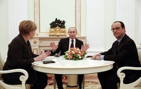 (VOVworld) – Russlands Präsident Wladimir Putin, Bundeskanzlerin Angela Merkel und der französische Präsident Francois Hollande haben in der Nacht zum Samstag in Moskau über Maßnahmen zur Lösung des Konflikts im Osten der Ukraine beraten. Zuvor waren erst Merkel und kurz nach ihr Hollande auf dem Flughafen Wnukowo in Moskau gelandet. Sie fuhren danach sofort zum Kreml, um mit Putin über eine neue Intiative zur Lösung des Konflikts in der Ostukraine zu verhandeln.