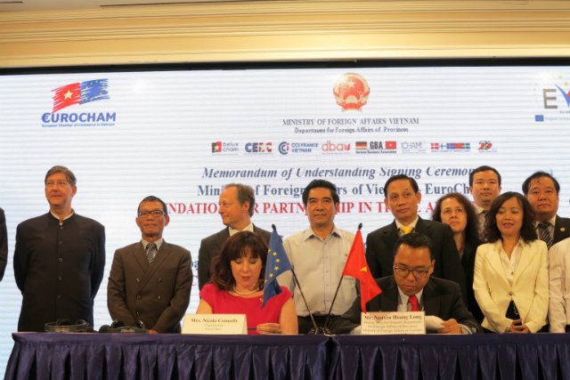 (VOVworld) – Eine Konferenz über die Chancen und Herausforderungen für Unternehmen und Provinzverwaltungen, wenn das Freihandelsabkommen zwischen Vietnam und der EU unterzeichnet wird, hat am Montag in Ho Chi Minh Stadt stattgefunden. Organisiert wurde sie vom Außenministerium, der europäischen Handelskammer in Vietnam Eurocham und dem EU-Vietnam-Handelsnetzwerk EVBN. Die Experten aus Europa und Vietnam haben ihre Einschätzungen über das Potenzial und die Effektivität des Freihandelsabkommens zwischen Vietnam und der EU ausgetauscht. Sie berieten konkrete Maßnahmen, um die Fähigkeit sowie das Bewusstsein der Provinzverwaltung und lokaler Unternehmen darüber zu verbessern. Beide, Provinzverwalter und Unternehmer, spielen eine wichtige Rolle bei der Umsetzung des Freihandelsabkommens. Die europäischen Unternehmer haben sich außerdem mit heimischen Unternehmern und Provinzverwaltern getroffen, um ihre Kooperation zu fördern und die Investitionen der europäischen Investoren im ganzen Land auszuweiten.