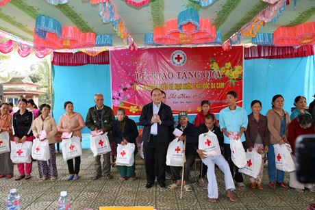 (VOVworld) – Am Samstag hat Vize-Premierminister Nguyen Xuan Phuc Menschen aus armen Verhältnissen und Agent-Orange-Opfer im Kreis Phu Loc in der zentralvietnamesischen Provinz Thua Thien Hue besucht. Er überreichte 100 Geschenke an die betroffenen Menschen. Er forderte die Provinzverwalter dazu auf, allen Menschen ein glückliches und sorgenfreies Neujahrsfest Tet zu ermöglichen. Am selben Tag überreichte Vize-Premierminister Hoang Trung Hai mehr als 1000 Geschenke an Bewohner im Kreis Binh Son in der Provinz Quang Ngai. Bei seinem Besuch brachte er den Wunsch zum Ausdruck, dass die Verwalter und die Bewohner weiterhin gemeinsam zum Aufbau der Heimat beitragen.