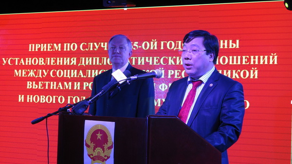 | Botschafter Nguyen Thanh Son hält seine Rede beim Empfang in Moskau. (Foto: baotintuc.vn) |
