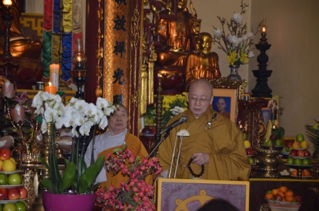 | Mönch Thich Phuoc Duong leitet das Gebet. (Foto: Thai Duong/VOVonline) |
