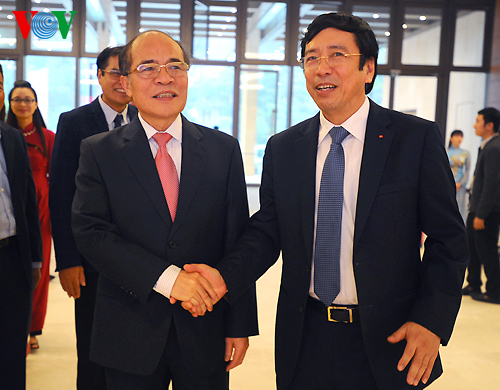 Zuvor war der Parlamentspräsident zu Gast beim staatlichen Fernsehsender (VTV). Er forderte den Fernsehsender dazu auf, die Qualität der Sendungen in allen Bereichen weiterhin zu verbessern. Er solle vor allem über die Tätigkeiten des Parlaments und der Abgeordneten ausführlich berichten. In der Zeit der Eingliederung solle der Fernsehsender die Inhalte der Sendungen und die Technik erneuern. Er solle alle politischen, sozial-wirtschaftlichen und kulturellen Ereignisse rechtzeitig und präzise berichten.
