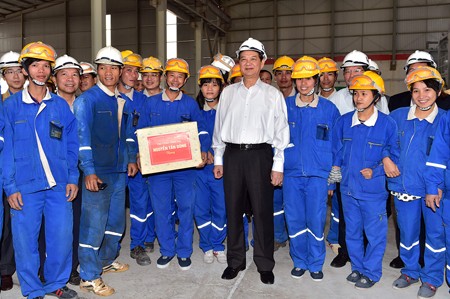 | Premierminister Nguyen Tan Dung besucht Mitarbeiter im Aluminium-Betrieb Lam Dong. (Foto: Chinhphu.vn) |