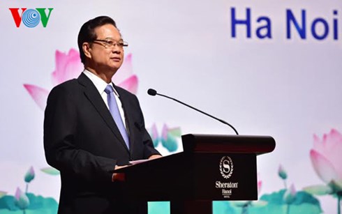 | Premierminister Nguyen Tan Dung redet auf der Konferenz. |