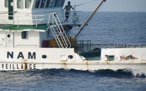 | Ein Fischerboot Vietnam wurde vom chinesischen Schiff gerammt und geschädigt. ( Foto: Fischereiaufsichtskräfte ) |