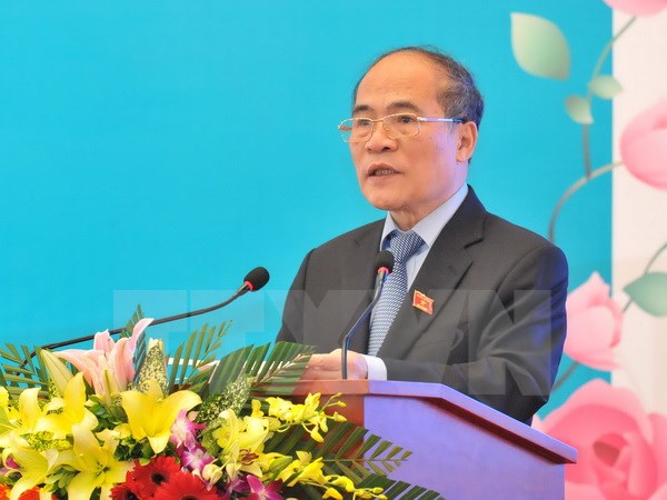 | Parlamentspräsident Nguyen Sinh Hung bei seiner Abschlussrede. (Foto: vietnamplus.vn) |