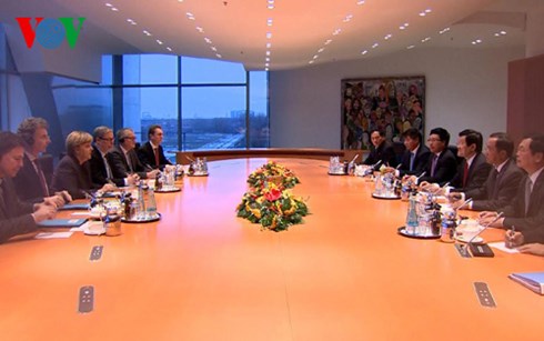 (VOVworld) – Bei einem Gespräch am Mittwoch haben Staatspräsident Truong Tan Sang und Bundeskanzlerin Angela Merkel sich darauf verständigt, dass Vietnam und Deutschland jeweils eigene Stärken haben, mit denen man sich gegenseitig im Wirtschaftsbereich helfen kann. Mit den Stärken Deutschlands in Wirtschaft, Wissenschaft und Technologie sowie der dynamischen Entwicklung und internationalen Eingliederung Vietnams können beide Länder Kooperationen im Wirtschaftsbereich vorantreiben. Außerdem waren sich die beiden Seiten einig, günstige Bedingungen für Unternehmen beider Länder zu schaffen und die vietnamesisch-deutsche Universität zu einem führenden Zentrum für Bildung und Forschung in Vietnam zu entwickeln. Darüber hinaus wollen sich Vietnam und Deutschland gegenseitig auf multilateralen Foren und bei internationalen Organisationen unterstützen. Die deutsche Bundeskanzlerin sagte die Unterstützung für Vietnam bei der Verstärkung der Beziehungen zur Europäischen Union zu. Dabei werde Deutschland die Unterzeichnung des Vietnam-EU-Freihandelsabkommens beschleunigen und die EU bei der Anerkennung der Marktwirtschaft Vietnams überzeugen. Seinerseits betonte der vietnamesische Staatschef, dass Vietnam die Rolle als Brücke zwischen der ASEAN, der EU und Deutschland spielen werde.