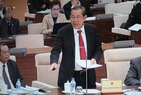 | Der Präsident des Obersten Volksgerichtshofs Truong Hoa Binh redet in der Sitzung des Ständigen Parlamentsausschusses am Donnerstag. (Foto: laodong.com.vn) |
