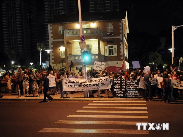| Israeli protestieren gegen die Offensive zur Suche nach den Entführern. (Foto: AFP/VNA) |