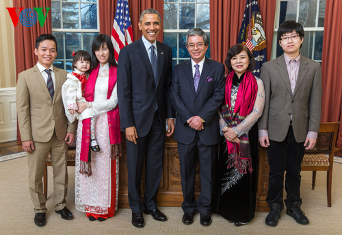 | Botschafter Pham Quang Vinh und seine Familie trifft US-Präsident Barack Obama (m.). (Foto: Huy Hoang) |