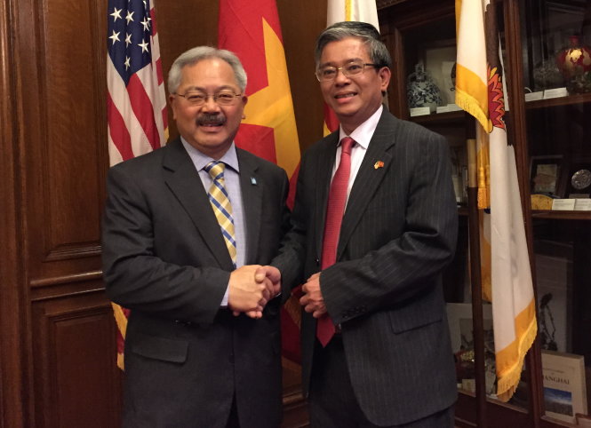 | Botschafter Pham Quang Vinh (r.) trifft Bürgermeister von San Francisco Edwin Lee. (Vietnamesische Botschaft in den USA) |