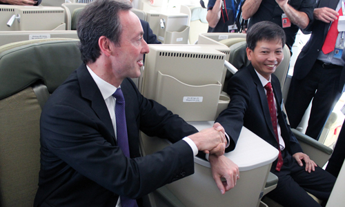 | Airbus-Chef Fabrice Brégier (l.) und der Vize-Generaldirektor von Vietnam Airlines. |