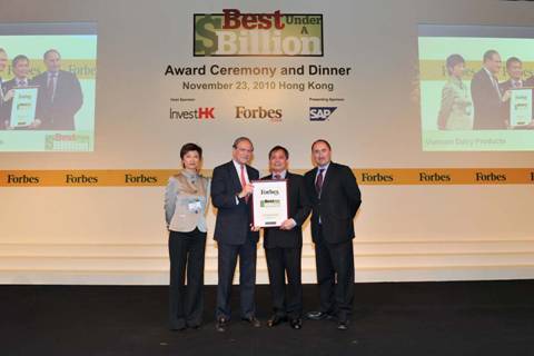 | Ein Vertreter des vietnamesischen Milchunternehmens Vinamilk erhält die BUB-Urkunde von Forbes Asia. (Foto: hanoimoi.com.vn) |