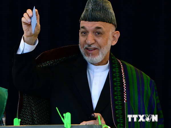 | Der afghanische Präsident Hamid Karzei ist in einem Wahllokal in der Hauptstadt Kabul. (Foto: AFP.VNA) |