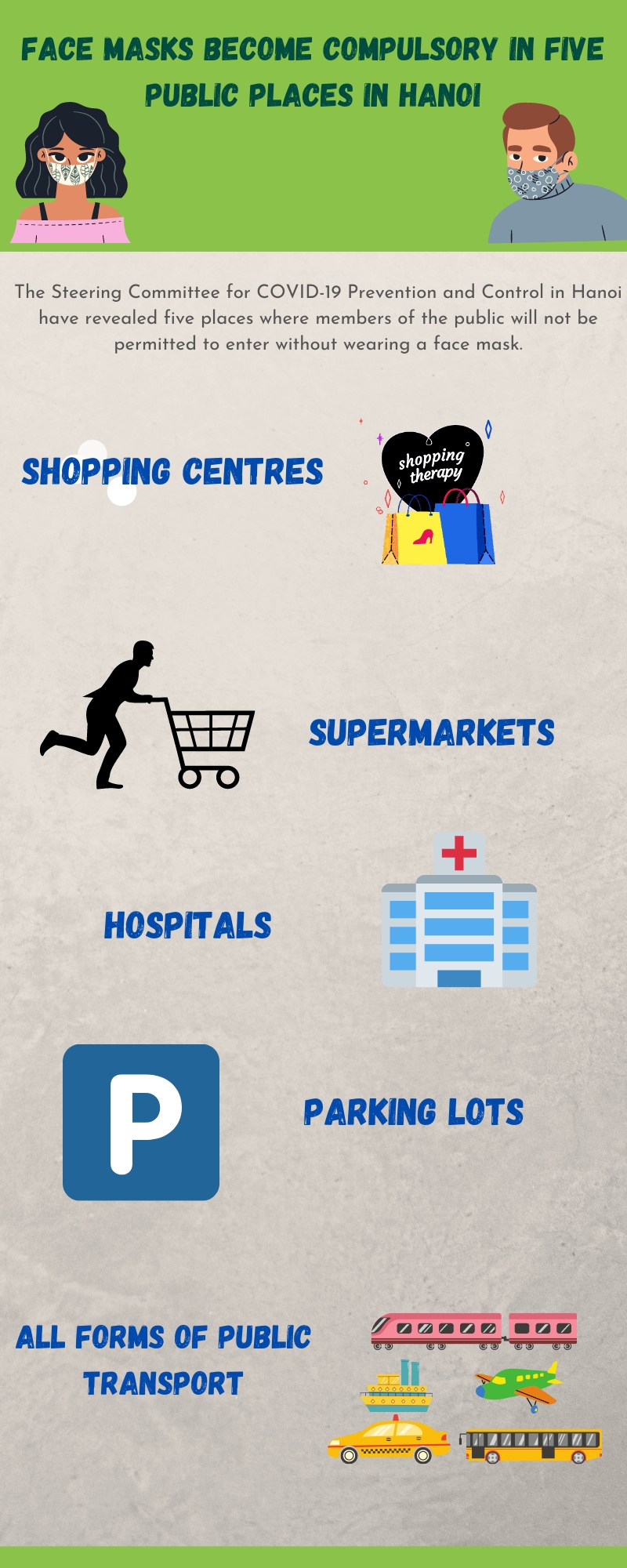 VOV.VN - The Steering Committee for COVID-19 Prevention and Control in Hanoi have revealed five places where members of the public will not be permitted to enter without wearing a face mask.