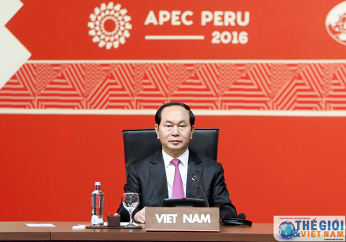 (VOVworld) – El presidente de Vietnam, Tran Dai Quang, afirmó en el marco de la Cumbre del Foro de Cooperación Económica Asia-Pacífico (APEC) en Perú que la celebración de la próxima cita en 2017 en el territorio nacional formará parte de la política exterior del país hasta 2020. Se comprometió también a cumplir eficientemente la responsabilidad para construir una región cada vez más próspera. La organización de dicho evento en el país constituye una oportunidad de oro para que Vietnam continúe cosechando logros más relevantes en el proceso de desarrollo.