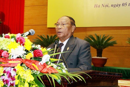 En nombre de la delegación del Reino de Cambodia, el presidente de la Asamblea Nacional de Cambodia Samdec Heng Samrin reafimó que la ayuda del ejército voluntario vietnamita al pueblo camboyano a liberarse del régimen polpotiano y lograr la gran victoria el 7 de enro de l979 se convirtió en su segundo cumpleaños. “El encuentro de hoy es un importante acontecimiento del Partido, el Estado y el pueblo de Vietnam que sacrificaron todos los aspectos por el resurginiento del pueblo camboyano y una oportunidad para que nuestro pueblo camboyano exprese el respeto y recuerde eternamente la gran ayuda del ejército voluntario vietnamita y algunos países amigos en el mundo que compartieron el dolor con nuestro pueblo. La realidad es que si no hubiera el noble sacrificio de las tropas vietanmitas nuestro pueblo camboyano no tendría la oportunidad de lograr la histórica victoria del 7 de enero de l979. El noble sacrificio del Ejército Popular de Vietnam trajo la gran victoria al pueblo camboyano.”